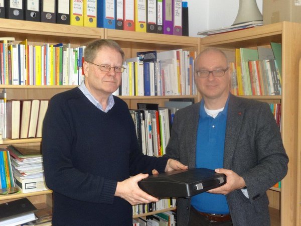 Am 10. März 2015 habe ich Herrn Martin Singe vom „Komitee für Grundrechte und Demokratie“ nach einem intensiven Gespräch über den aktuellen Stand der Einbeziehung von Gefangenen in die Renten-, Kranken- und Pflegeversicherung eine elektrische Schreibmaschine als Spende für das Projekt "Schreibmaschinen für Gefangene" überreicht.