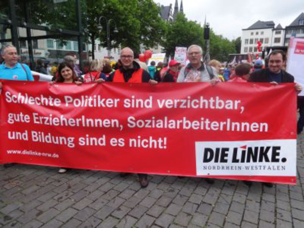 Dass Solidarität mehr ist als eine Schönwetterveranstaltung zeigten Tausende Erzieher*innen am Samstagmorgen in Köln bei der Demonstration des DGB NRW zur Unterstützung der Aufwertungsrunde für Sozial- und Erziehungsberufe. Wir LINKEN sagten auch bei zeitweise strömendem Regen: Wir stehen solidarisch an Eurer Seite!