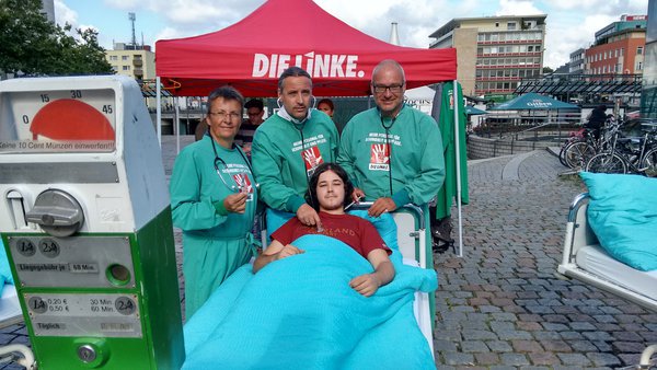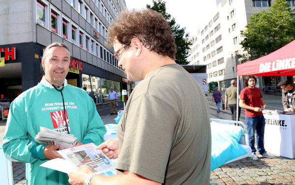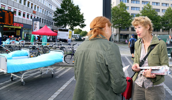 In zahlreichen Gesprächen wurde deutlich, dass vielen Menschen das Problem der Zuzahlungen für Behandlungen, Brillen, Medikamente und Zahnersatz auf den Nägeln brennt. Weil nicht länger der Geldbeutel über den Zugang zu medizinischer Versorgung entscheiden darf, sagt DIE LINKE: „Alle medizinisch notwendigen Leistungen sind wieder von den Krankenkassen zu bezahlen. Das muss drin sein, denn Gesundheit ist keine Ware!“ Auch die Beschäftigten im Gesundheitswesen bekommen den Druck der Kommerzialisierung des Gesundheitswesens zu spüren, wenn Krankenhäuser in profitorientierte Unternehmen umgewandelt werden. Deshalb sage ich mit der LINKEN in Köln "Nein!" zu Privatisierung und Ausgründungen bei den städtischen Kliniken und setze mich im Bundestag für eine gesetzliche Mindestpersonalbemessung für alle Beschäftigten in den Krankenhäusern ein.