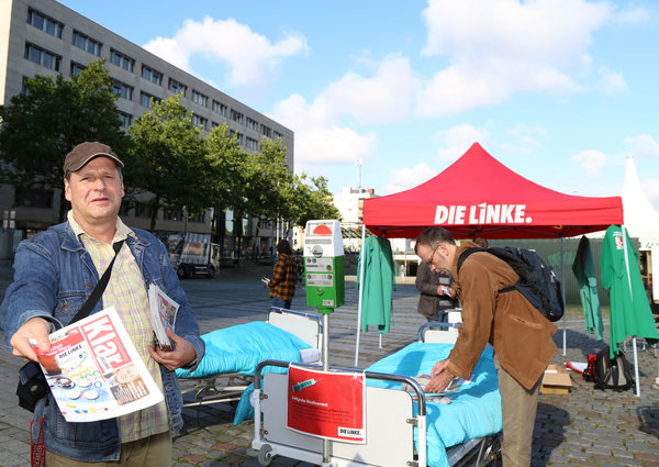 Gemeinsam mit meinen Fraktionskolleg*innen Kathrin Vogler und Dr. Alexander S. Neu und vielen engagierten Genoss*innen aus Köln warb ich heute Vormittag auf dem Wiener Platz in Köln-Mülheim bei der gesundheitspolitischen Infotour der Bundestagsfraktion DIE LINKE durch NRW für eine Solidarische Krankenversicherung.