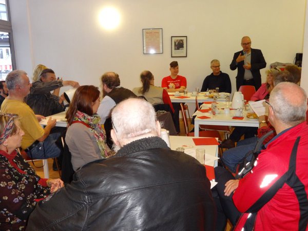 Zudem verwies er auf die gängige Praxis von Geheimdiensten, durch den Datenaustausch mit befreundeten Diensten inländische Datenschutzrechte zu umgehen. Neben außenpolitischem Druck auf befreundete Staaten bis hin zur Kündigung und Neuverhandlung des Datenschutzabkommens ‚Safe Harbour‘ mit den USA setzt Schwerd auf den Ausbau individueller Klagerechte und vor allem auf die Förderung gemeindienstfreier Software als Erfolg versprechende Gegenstrategieen. Von grundlegender Bedeutung ist nach seiner Auffassung eine gesetzliche Verpflichtung von Software-Anbietern, die größtmöglichen Schutzeinstellungen als Voreinstellung von Programmen vorzugeben. Dann müssten Zugriffsrechte auf persönliche Daten von den Nutzern und Nutzerinnen bewusst freigeschaltet werden. Für aktiven Schutz durch Verschlüsselungsprogramme wie PGP, die verstärkte demokratische Kontrolle und für das LINKE Fernziel der Abschaffung von Geheimdiensten warb Thomas Steffen vom Kreisvorstand der Kölner LINKEN ebenso wie für die Teilnahme an den Aktionen und Demonstrationen des Aktionsbündnisses ‚Stop watching us!‘ In der lebhaften Diskussion spielte auch die Frage nach den unvermeidlichen Widersprüchen zwischen der Nutzung sozialer Medien und der Notwendigkeit, sich gleichzeitig auch vor deren Datensammelwut zu schützen, eine bedeutende Rolle. Alles in allem eine Veranstaltung, in der Alle etwas lernen konnten. Das Gelernte wurde im vollen Wahlkreisbüro beim stay together mit Kölsch, Flönz un halve Hahn noch länger intensiv ausgetauscht und besprochen.