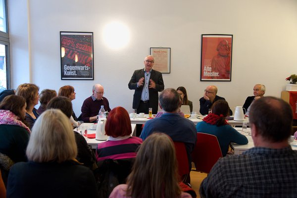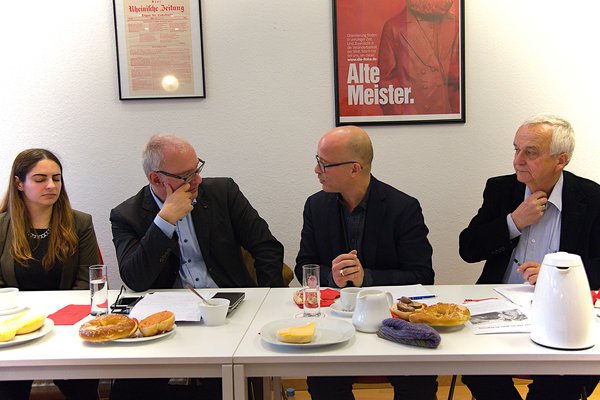 Zwei Premieren gab es an diesem Sonntag im Wahlkreisbüro: Erstmals fand der Frühschoppen in Kooperation mit der Rosa-Luxemburg-Stiftung statt, und erstmals hatten wir mit Dana Regev und Tsafrir Cohen internationale Gäste. Rund 50 interessierte Besucher und Besucherinnen erfuhren im fast überfüllten Wahlkreisbüro aus erster Hand, wie es aktuell um die Zwei-Staaten-Lösung bestellt ist und ob es darüber hinaus Perspektiven gibt, die den Konflikt in Palästina entschärfen können. „Israel gleicht immer mehr einer Stammesgesellschaft“ erklärte Cohen und stellte außerdem die Gründe für die Schwäche der israelischen Linken wie auch der Gewerkschaften in den Vordergrund seines Vortrages. Die junge israelische Journalistin Dana Regev, bis 2014 bei der israelischen Tageszeitung „Ha’aretz“ beschäftigt, konnte außerdem eindrücklich von ihren Erfahrungen als Soldaten in der israelischen Armee berichten. Regev war 2005 Mitglied einer Sondereinheit zur Evakuierung israelischer Siedler und Siedlerinnen aus dem Gaza-Streifen. 2006 hat sie am Libanon-Krieg teilgenommen. Sie gehört der Organisation „Breaking the Silence“ von ehemaligen und aktiven israelischen Soldaten und Soldatinnen an, deren Ziel es ist, die israelische Gesellschaft über die Aktivitäten der Armee in den besetzten Gebieten Palästinas zu informieren, indem sie Berichte über ihre Erlebnisse während ihres Dienstes veröffentlichen. Diese innerisraelische Kritik erreichte im zurückliegenden Sommer auch die Domstadt. In Köln gab es heftige Auseinandersetzungen darum, ob die Ausstellung „Breaking the Silence“ gezeigt werden solle, in der die israelische Besatzungspolitik in Palästina kritisch beleuchtet wird. Mitte 2015 hatte der damalige Oberbürgermeister Roters eine bereits zugesagte Präsentation dieser Ausstellung im Kölner Rathaus abgesagt, nach heftiger Kritik an dieser Entscheidung wird sie nun 2016 dort zu sehen sein. Wie wichtig eine solche Darstellung der israelischen Besatzungspolitik ist, konnten Cohen und Regev an diesem Mittag eindrucksvoll vermitteln. Schließlich gibt in der israelischen Gesellschaft nicht nur die rechtskonservative Regierung, sondern auch massive Kritik an der Politik gegenüber den Palästinensern und Palästinenserinnen ebenso wie an der Verschärfung der sozialen Gegensätze im Land. Auch über die zunehmende soziale Ungleichheit, rasant steigende Mieten in den Städten, vor allem in Tel Aviv, niedrige Durchschnittseinkommen und hohe Preise für die Güter des alltäglichen Bedarfes wurde intensiv debattiert. Die Veranstaltung zeigte deutlich, dass es möglich ist, aus einer Perspektive der kritischen Solidarität mit einer Israelin und über die Entwicklungen in der israelischen Gesellschaft ausgesprochen sachlich und dennoch engagiert zu reden, ohne dass auch nur ein Hauch von Antisemitismus im Raum lag. Am Schluss der Debatte zitierte Matthias W. Birkwald mit einem Augenzwinkern den Kölner Kabarettisten Jürgen Becker und wünschte sich für Israel bis zur Einrichtung zweier gleichberechtigter Staaten eine ähnliche Entwicklung in diesem Sinne: „Hier in Nordrhein-Westfalen wohnen Rheinländer und Westfalen zusammen in einem Bundesland. Das ist furchtbar, aber es geht.“