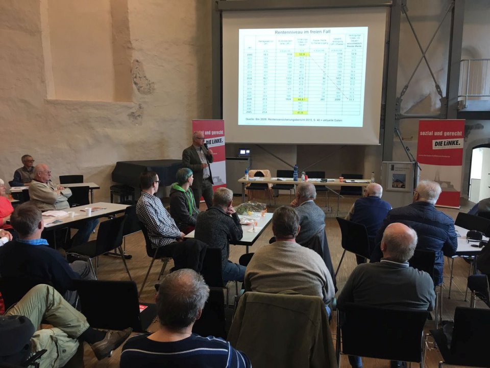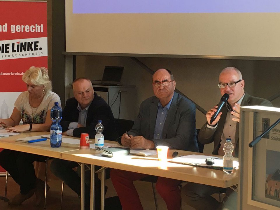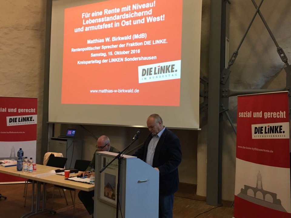 Klare Worte zum Thema Rente äußerte ich am 15. Oktober 2016 in Sondershausen. DIE LINKE. Kyffhäuserkreis hatte mich eingeladen, auf ihrem Kreisparteitag über die rentenpolitischen Ziele der LINKEN zu informieren. Viele Fragen aus dem Publikum drehten sich um die von der Großen Koalition angekündigte Angleichung der Ostrenten an das Niveau in Westdeutschland, die voraussichtlich neue Ungerechtigkeiten verursachen wird.
