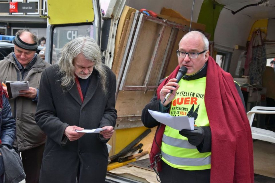 Klare Kante gegen rassistische Hetze und die Verbindung des Kampfes gegen Rassismus mit sozialen Fragen standen im Mittelpunkt meiner bei klirrender Kälte mit viel Beifall von den rund 400 Teilnehmenden gehaltenen Rede bei der heutigen Protestkundgebung des Bündnisses "Köln gegen Rechts" auf dem Bahnhofsvorplatz in Köln. Aus meiner Rede: "Antirassistische Politik muss berechtigte Sicherheitsinteressen der Menschen ernst nehmen und braucht Antworten auf die stetige Drohung sozialer Ausgrenzung auch innerhalb der Mehrheitsgesellschaft." Einen Bericht zur Demo und viele Fotos gibt es auf der Website von Berthold Bronisz: www.berthold-bronisz.de/fuer-die-demokratie-einstehen/