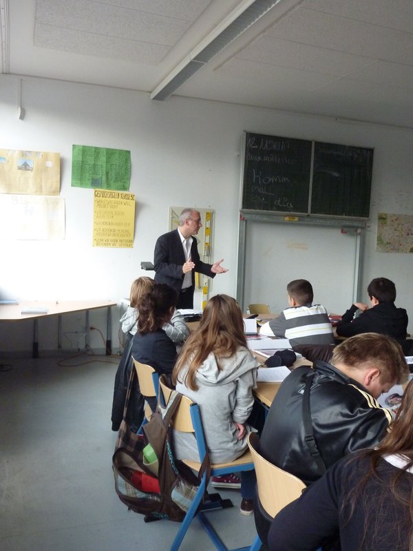 Anlässlich des Jahrestages der Verabschiedung des "Übereinkommens über die Rechte des Kindes" (20. November 1989) diskutierten Schülerinnen und Schüler mit dem Bundestagsabgeordneten der LINKEN über die UN-Kinderrechtskonvention. Matthias W. Birkwald besuchte die achte Klasse der Henry-Ford-Realschule in der Karl-Marx-Allee im Kölner Stadtteil Seeberg.