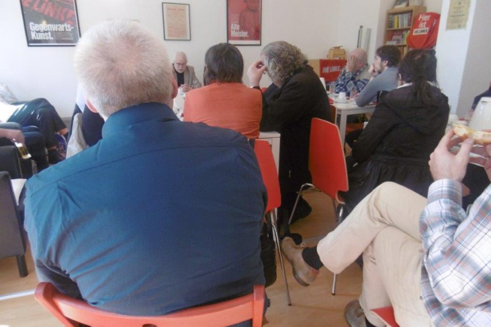 Eine ebenso konstruktive wie kontroverse Debatte erlebten die zwei mal elf Teilnehmenden beim LINKEN Frühschoppen am 2.4. im Kölner Wahlkreisbüro.