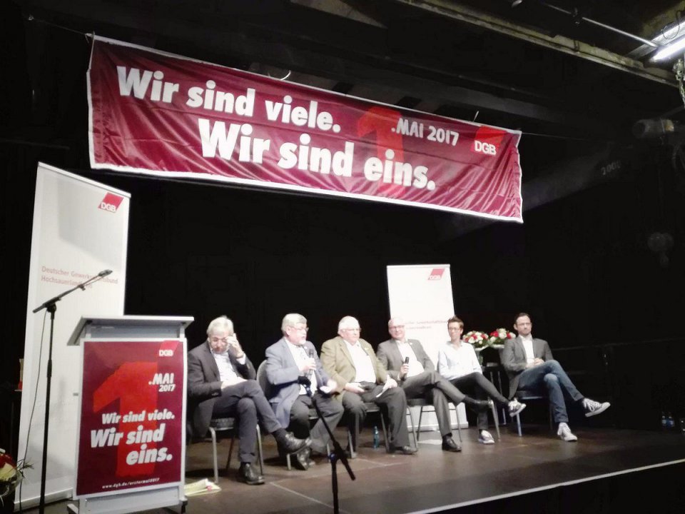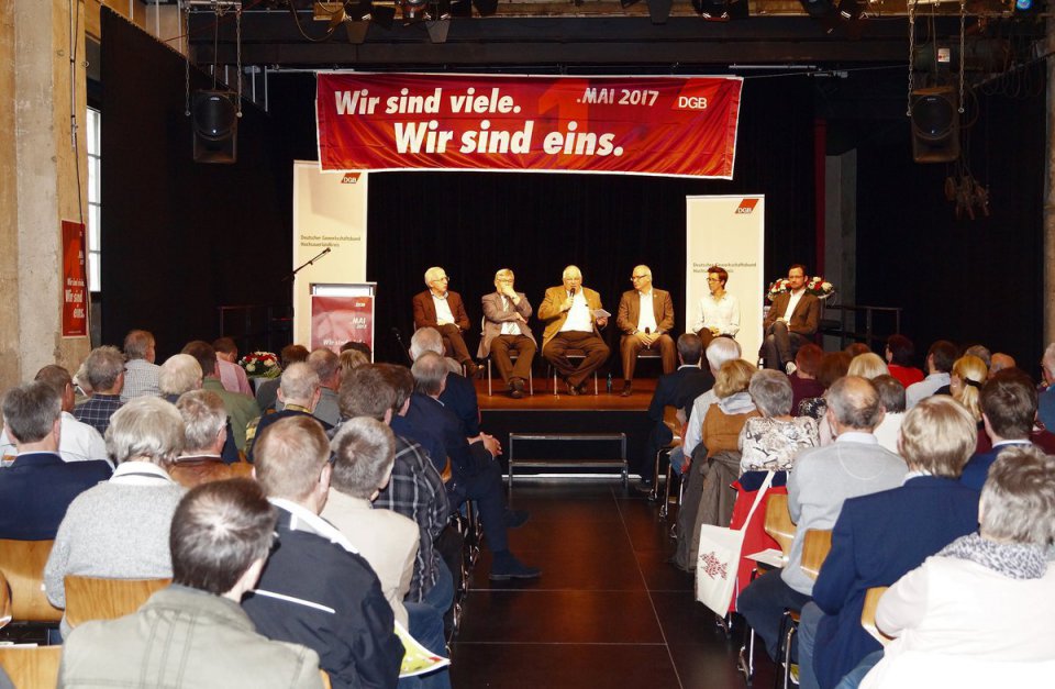 Auf dem Podium diskutierten Matthias W. Birkwald MdB, Roland Engels (DGB), Klaus Kaiser MdL (CDU NRW), Verena Verspohl (Mitglied des Vorstands Bündnis 90/Die Grünen NRW) und Dirk Wiese MdB (SPD) über den Weg zu einer sicheren und gerechten Rente für alle. Die von Matthias W. Birkwald vorgestellten rentenpolitischen Forderungen der LINKEN fanden beim anwesenden Publikum deutliche Zustimmung, was Matthias W. Birkwald als positives Zeichen für die am 14. Mai 2017 stattfindene Landtagswahl in Nordrhein-Westfalen wertete.