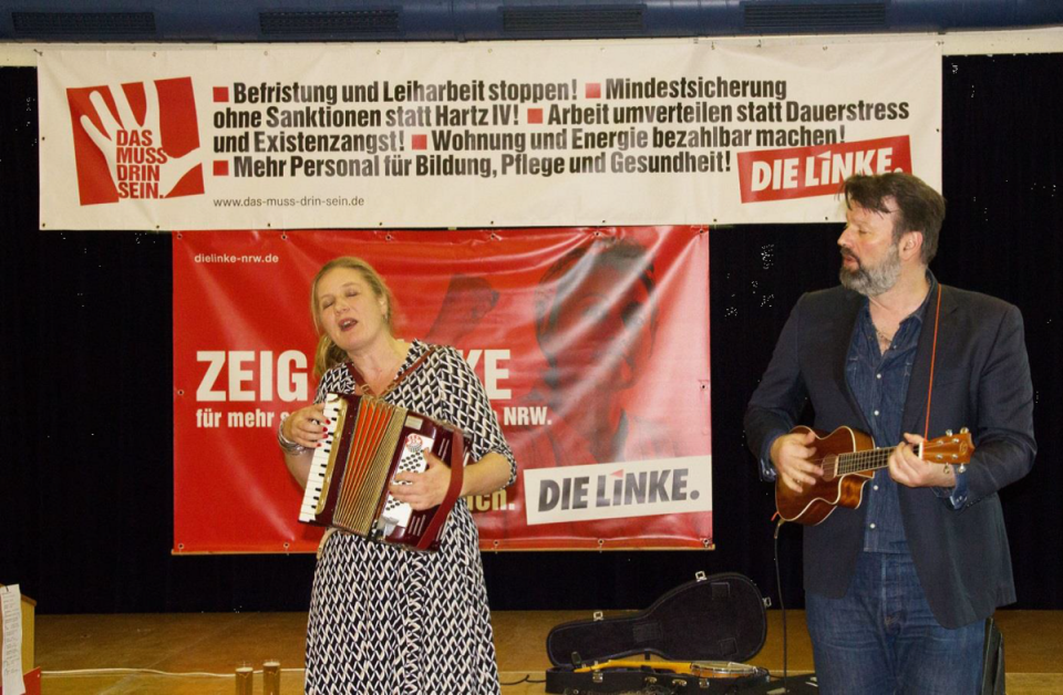 Am 14. Mai sind Landtagswahlen und am 24. September wird ein neuer Bundestag gewählt werden. Grund genug für uns LINKE auch an diesem Abend in Kerpen-Horrem zu zeigen, wo wir stehen, und zu sagen, was wir einfordern: Dazu zählt unter anderem ein gesetzlicher Landesmindestlohn von zwölf Euro und ein Landesprogramm gegen die Leiharbeit. Die „sachgrundlose Befristung“ von Arbeitsverhältnissen abzuschaffen, ist uns ein Herzensanliegen.