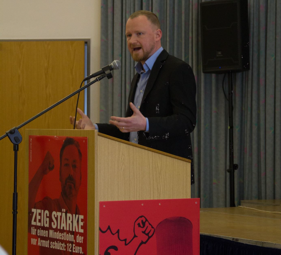 Nachdem Siegfried Dörr für den DGB die großen arbeitsmarktpolitischen Übereinstimmungen mit der LINKEN herausstellte und Christian Leye mit einer fulminanten Rede über die sozialpolitischen Kernforderungen der LINKEN. NRW im Landtagswahlkampf 2017 reüssierte, stellte ich - nach einem Werbeblock für die Teilnahme an den Sozialwahlen - den rentenpolitischen Aspekt unseres Konzepts für ein gerechtes Nordrhein-Westfalen in den Vordergrund, was sehr große Schnittmengen mit den Rentenvorstellungen des DGBs hat. Wir LINKEN in NRW haben in unserem Landtagswahlprogramm der Rente viel Platz eingeräumt - auch wenn über die Rente auf Bundesebene entschieden wird. Wir müssen etwas gegen die deutlich zunehmende Altersarmut tun und die gesetzliche Rente muss den Lebensstandard wieder sicher. Das heißt: Das Rentenniveau muss wieder rauf auf 53 Prozent und wir fordern eine Solidarische Mindestrente in Höhe von 1050 Euro netto, denn jeder Mensch in NRW soll in Würde im Ruhestand leben können. Mit der auch vom DGB unterstützten Forderung, die Rente nach Mindestentgeltpunkten zu entfristen, wollen wir Menschen, die lange Jahre gearbeitet haben, eine Rente oberhalb der Solidarischen Mindestrente ermöglichen.