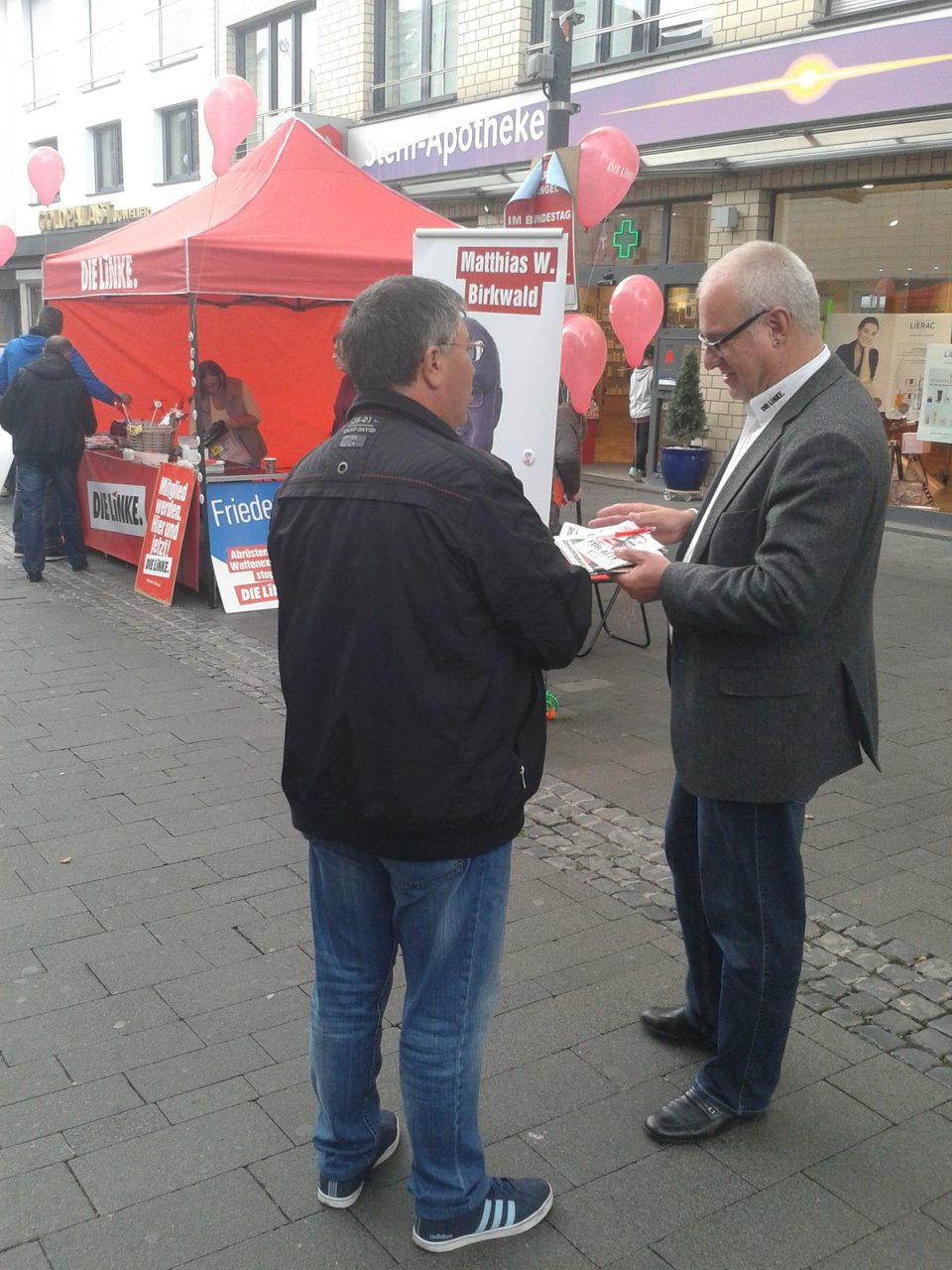 Am Sonntag wird gewählt und noch ist nichts entschieden. Der Wahlkampfendspurt läuft auch im Rhein-Erft-Kreis. Am 20. und 21. September habe ich gemeinsam mit Genossinnen und Genossen, sowie mit Bündnispartnerinnen und Bündnispartnern, Straßenwahlkampf im Rhein-Erft-Kreis gemacht und DIE LINKE bekommt auch hier viel Zuspruch. In Liblar, in Bergheim und am Klüttenbrunnen in Frechen haben wir uns für eine soziale, gerechte und friedliche Gesellschaft stark gemacht. Am Rande des Infostandes in Bergheim durfte ich mit großer Freude den fünften Spendenscheck des Vereins der LINKEN-Bundestagsfraktion, an den Bergheimer Verein SHG Handicap überreichen. Meine Partei DIE LINKE und ich sind seit vielen Jahren freundschaftlich mit Handicap eng verbunden.
