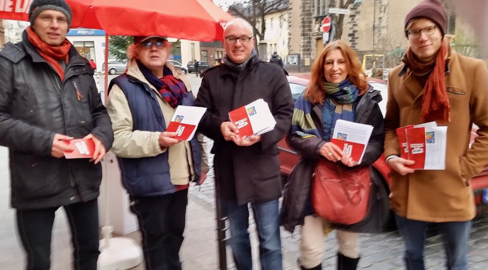Gemeinsam mit Genoss*innen meines LINKEN Ortsverbandes Köln-Innenstadt/Rodenkirchen verteilte ich beim ersten Infostand im Jahr 2018 auf der Severinstraße Flyer zur Wohnungspolitik. Nach dem Auslaufen der Mietpreisbindung in den Sozialwohnungen auf dem Stollwerck-Gelände stehen im Severinsviertel weitere Mietsteigerungen an. Das lehnen wir ab. Deshalb fordert DIE LINKE eine Milieuschutzsatzung für das Severinsviertel und mehr dauerhaft preisgünstige kommunal gebaute Wohnungen. Viele Passant*innen nahmen dies trotz der Kälte erfreut und zustimmend auf.
