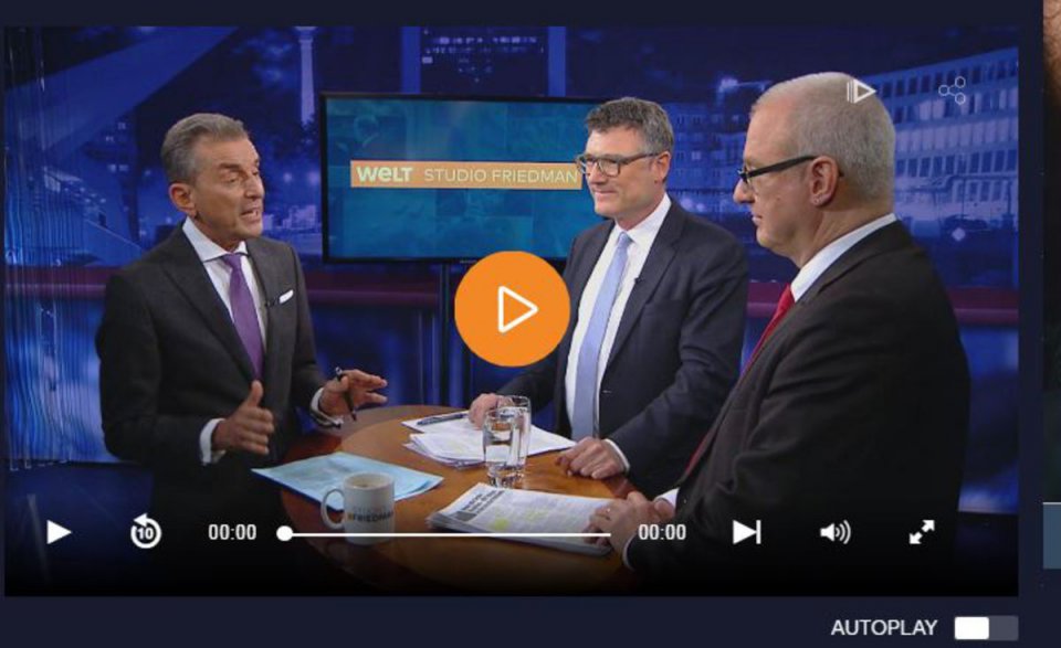 Die Sendung können Sie sich hier ansehen:www.welt.de/mediathek/talk/politik/studio-friedman/sendung173865089/Studio-Friedman-Merkels-GroKo-Politik-fuer-die-Zukunft-oder-einfach-nur-Weiter-so.html