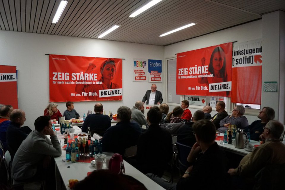 Alle Anwesenden waren sich einig: Mit einer Regierung aus Union und SPD wird es keinen Kurzwechsel hin zur sozialen Gerechtigkeit geben. Mit Horst Seehofer, Olaf Scholz und insbesondere mit Jens Spahn, vor dem ich besonders eindringlich warnte, rückt jetzt auch die neue Koalition aus Union und SPD weiter nach rechts. Und im Deutschen Bundestag ist die AfD mit ihren zahlreichen Rechtsradikalen, Rassisten, Rechtsnationalen, Erzkonservativen, Chauvinisten und Hetzern, sowie ein paar AfD-Frauen, die diese reaktionäre Politik im Deutschen Bundestag mindestens mittragen, die numerisch stärkste Fraktion in der Opposition. Das „Weiter so“ der Koalition aus Union und SPD wird den Rechtsruck nicht aufhalten, sondern ihn noch befeuern. Wir, DIE LINKE, laden deshalb herzlich ein, in und außerhalb der Partei verstärkt ins Gespräch zu finden. Wir müssen noch mehr Druck für eine gerechte Sozialpolitik in Deutschland und auf Ebene der Europäischen Union, gegen Altersarmut und Jugendarbeitslosigkeit, für gute Renten und Löhne und für ein soziales und friedliches Europa machen.
