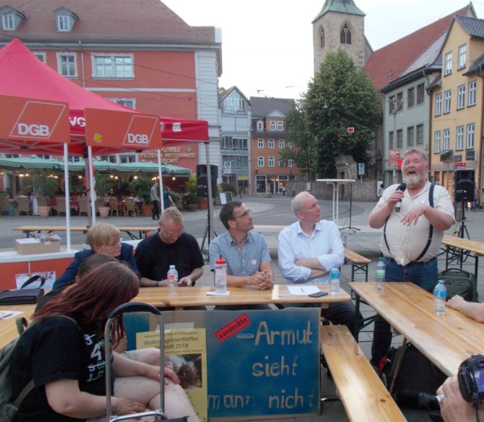 Die Stände wurden vom DGB, der Caritas, der Diakonie, der AWO und Talisa e.V. einer Arbeitsloseninitiative aus Erfurt gestaltet und als Betroffenenorganisation war das Armutsnetzwerk e.V. beteiligt.