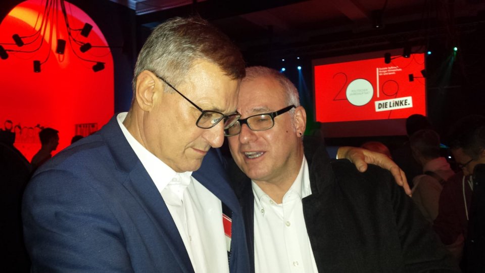 Mit meinem Parteivorsitzenden Bernd Riexinger MdB beim gelungenen Politischen Jahresauftakt unserer Partei im „Refugio“ in Berlin am 11.01.2019 (tvie)