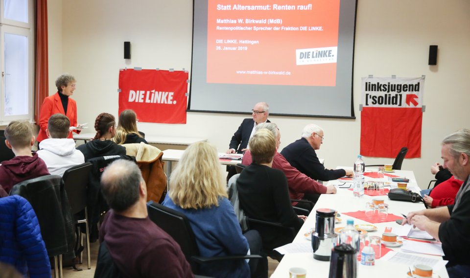 Am Sonnabend, den 26. Januar war Matthias W. Birkwald nach Hattingen eingeladen und hielt vor 33 interesierten Bürger*innen seinen Rentenvortrag "Renten rauf statt Altersarmut!" im Bürgerzentrum "Am Holschentor".