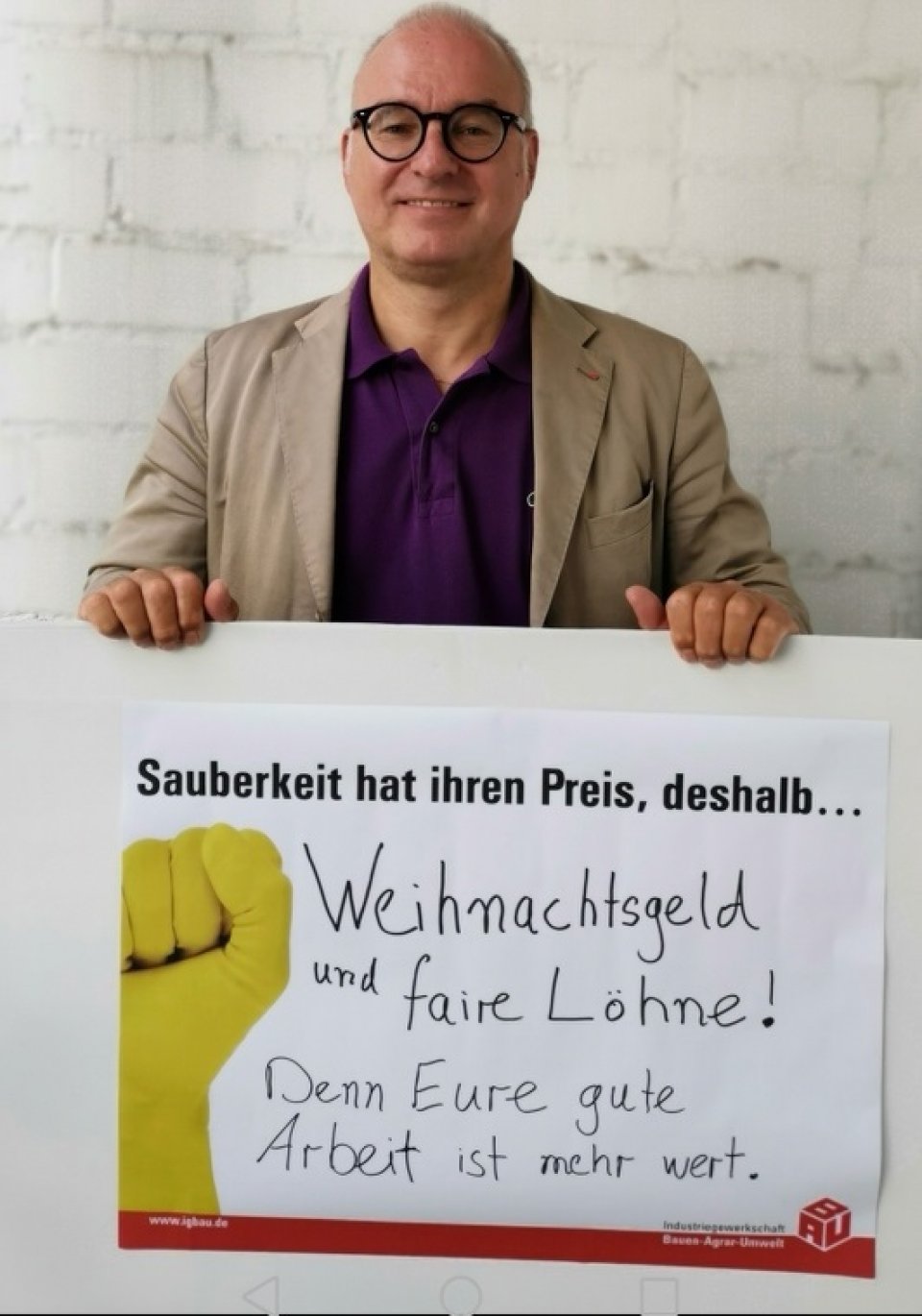 Ausdrücklich unterstützen wir Eure Forderungen nach einem fairen Rahmentarifvertrag mit vollen Zuschlägen für Mehrarbeit, Sonntags- und Feiertagsarbeit und nach einem Weihnachtsgeld.