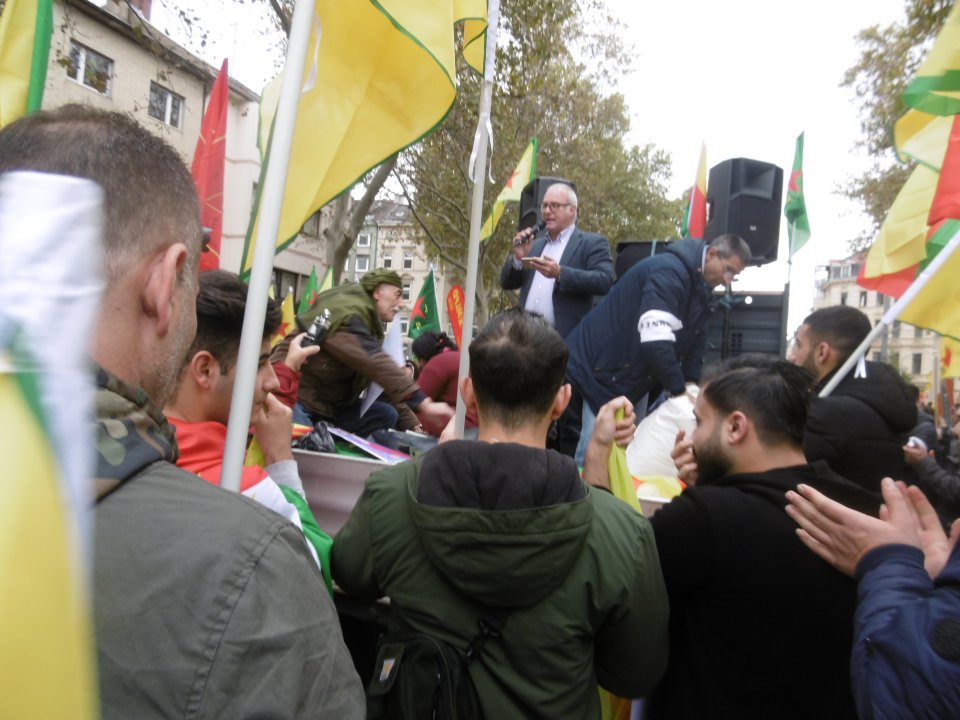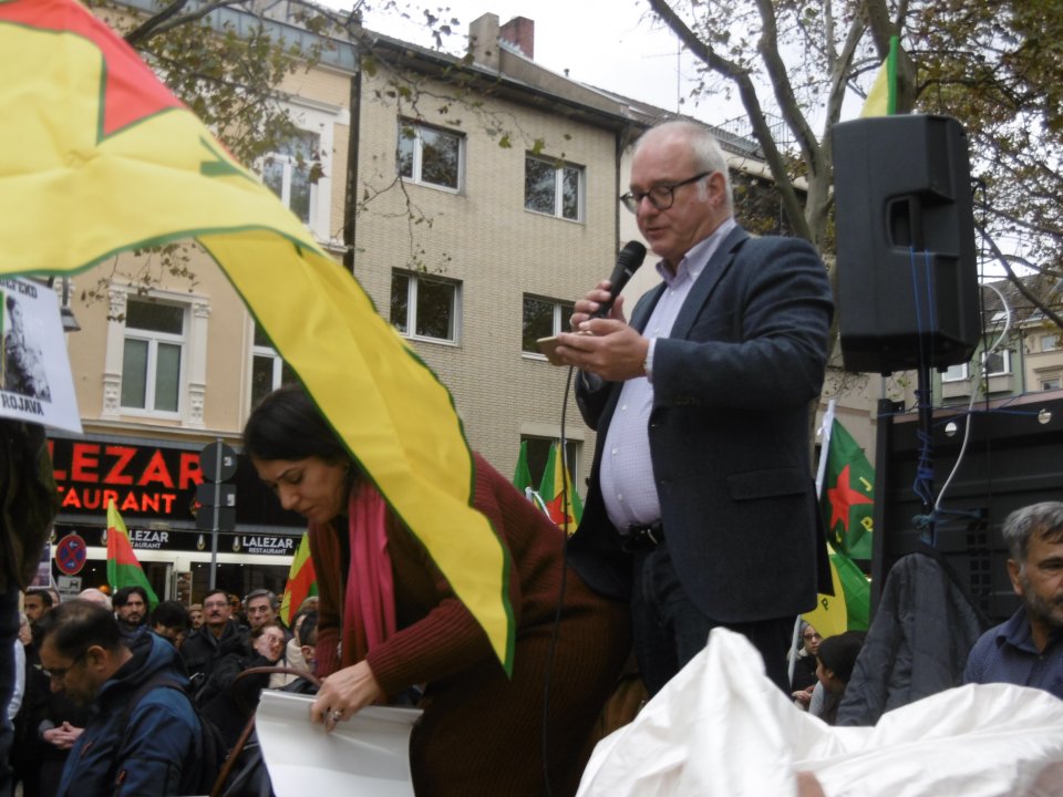 Matthias W. Birkwald spricht bei der Auftaktkundgebung am Chlodwigplatz