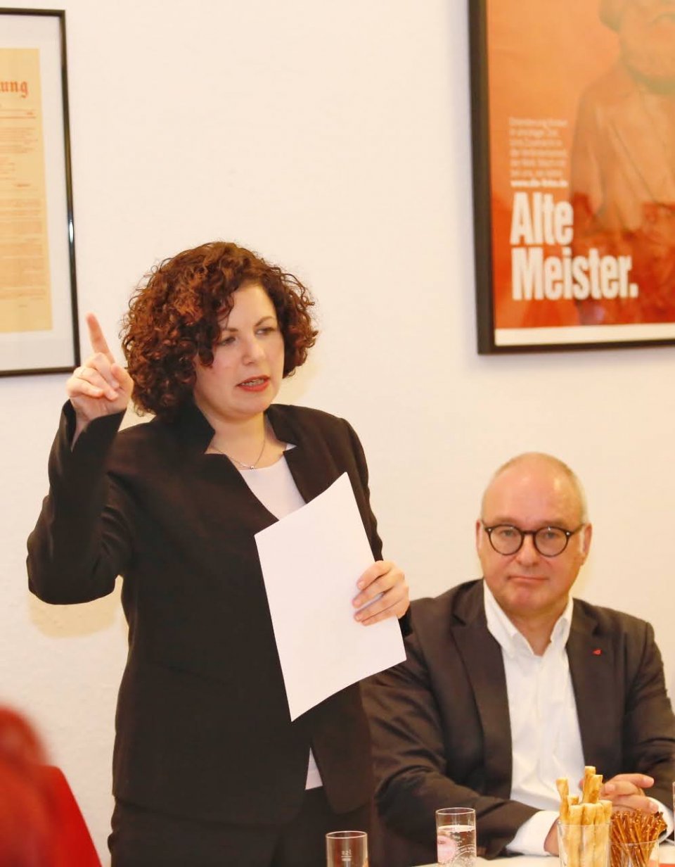 Amira Mohamed Ali nutze die Gelegenheit, sich und vor allem die Schwerpunkte der Fraktionsarbeit 2020 einem konzentrierten und informierten Publikum überzeugend vorzustellen: Impulse für den demokratischen Sozialstaat des 21. Jahrhunderts, klare friedenspolitische Alternativen, Zukunftsinvestitionen in Infrastruktur, Klimaschutz und vor allem preiswerten Wohnraum in öffentlichem Eigentum.