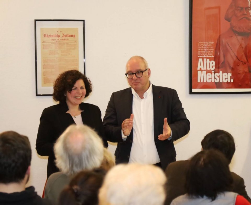 Zu den Themen Friedenspolitik, Armut, Arbeitspolitik, Lobbyismus und Miete und Wohnen erhielten die Anwesenden einen Überblick über das Agieren der Linksfraktion im Bundestag. Und anschließend gab es eine engagierte und kompetente Diskussion mit vielen Wortmeldungen und ebenfalls Gelegenheit zum persönlichen Gespräch.