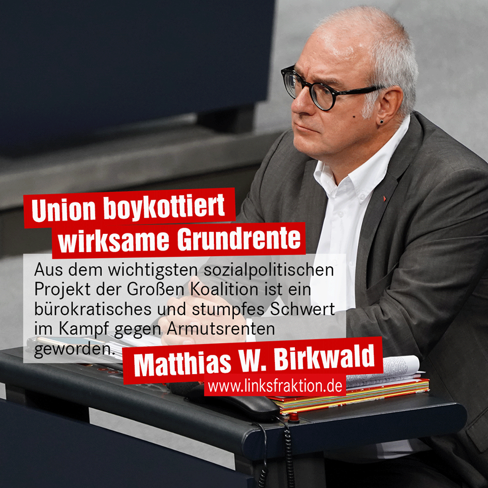 „Aus dem wichtigsten sozialpolitischen Projekt der Großen Koalition ist ein bürokratisches und stumpfes Schwert im Kampf gegen Armutsrenten geworden, das nicht mal seinen Namen verdient“, erklärt Matthias W. Birkwald, rentenpolitischer Sprecher der Fraktion DIE LINKE, zur Verabschiedung der sogenannten „Grundrente“.