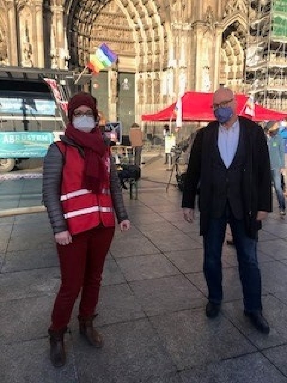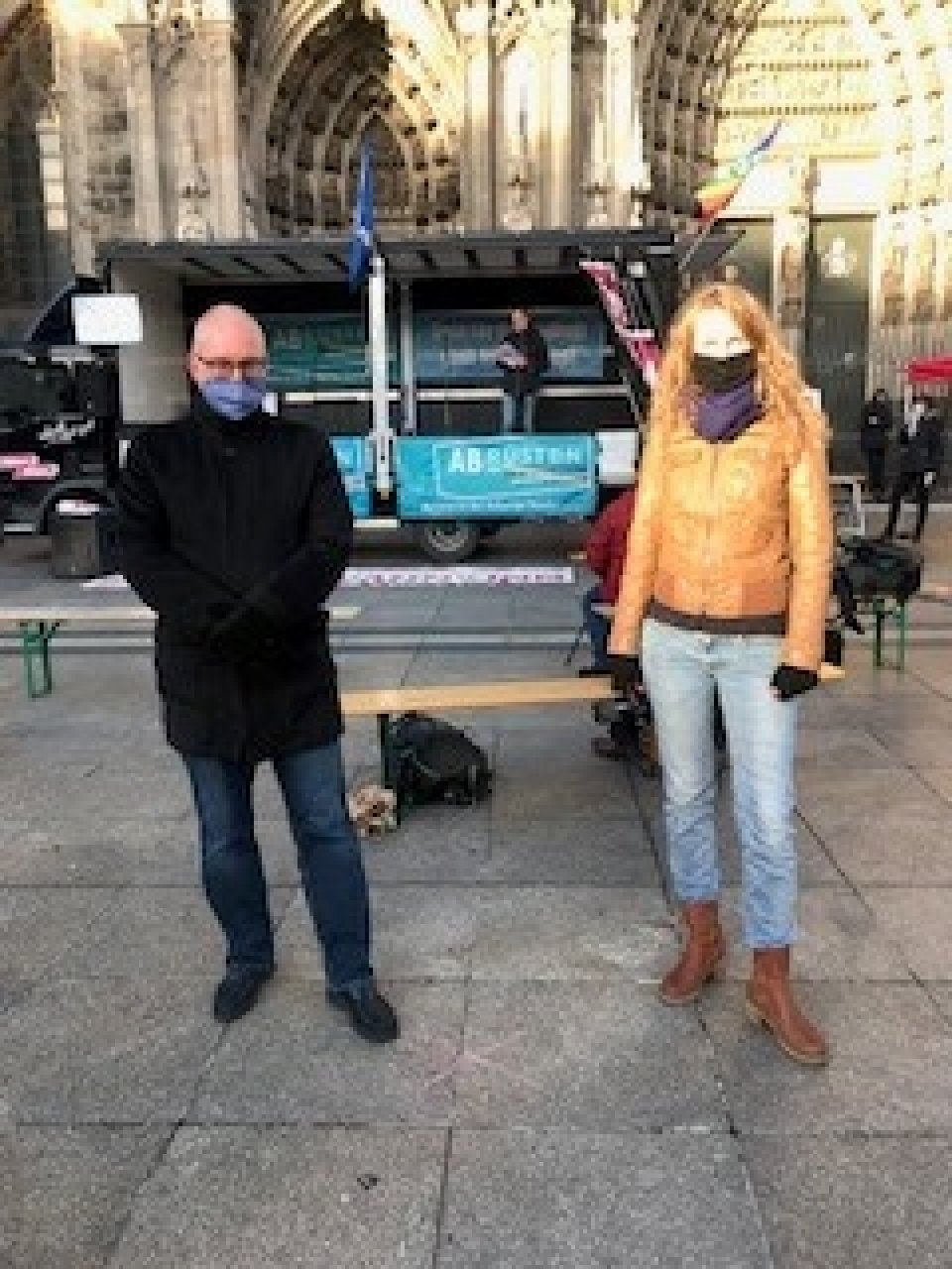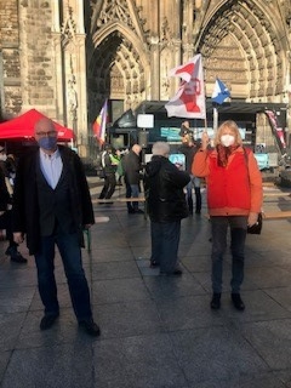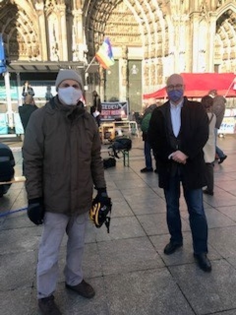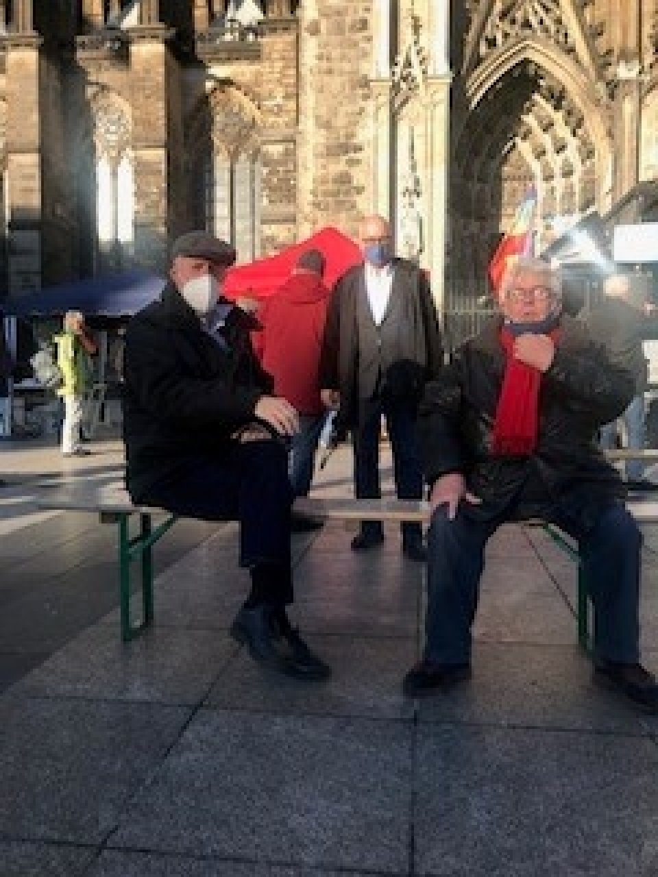 Am Samstag, 5. Dezember hatte ein breites Bündnis (u.a. DGB Köln, Kölner Friedensforum, Deutsche Friedensgesellschaft – Vereinigte KriegsdienstgegnerInnen Köln, Friedensbildungswerk e.V., AK Zivilklausel Uni Köln, VVN-BdA Köln, Kölner Aktionsbündnis gegen Verdrängung und Mietenwahnsinn, Fridays for Future Köln, Seebrücke Köln, DIDF) zur Kundgebung aufgerufen. Es sollte öffentlich, aber natürlich Corona-konform mit Abstand für Frieden und Abrüstung ein Zeichen gesetzt werden.