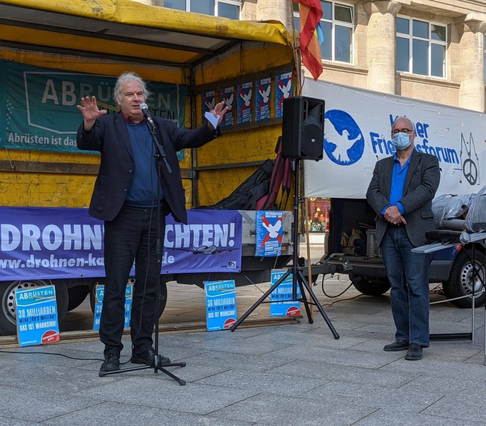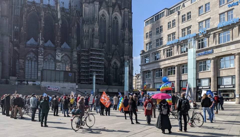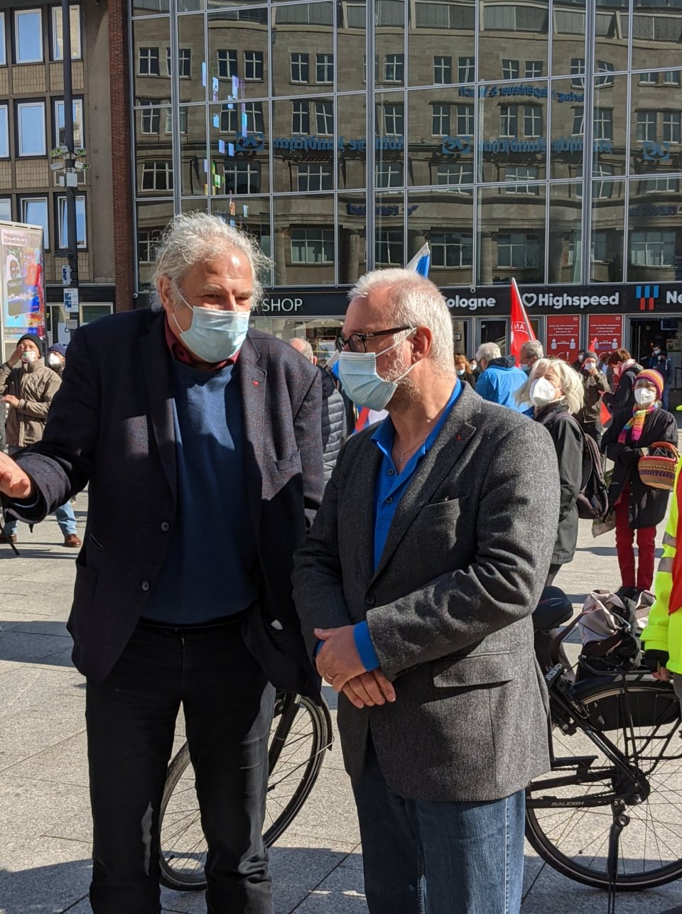 Am 3. April beteiligte sich Matthias W. Birkwald MdB an einer Corona-konformen Kundgebung zum Ostermarsch2021 am Bahnhofsvorplatz in Köln. "Auch in Corona-Zeiten ist es wichtig, gegen Gewalt als Mittel der Politik und für Abrüstung zu demonstrieren", so der Kölner Abgeordnete. Neben vielen anderen wirkten dort auch mit Andrej Hunko MdB, Isabelle Casel und Murat Yilmaz mit. Und das Wetter spielte auch mit. Matthias W. Birkwald dankt allen Teilnehmer:innen. Der Einsatz für eine friedliche Welt geht weiter!