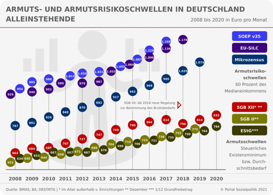 9,50 Euro oder 9,60 Euro (2, Halbjahr) schützen weder heute vor Armut trotz Vollzeitarbeit, noch schützen sie nach einem 45 Jahre langen Arbeitsleben vor Altersarmut. Einen Ausweg aus dieser Sackgasse zeigt der Entwurf für eine EU-Mindestlohnrichtline auf. Er definiert angemessene Mindestlöhne in Höhe von 60 Prozent des Bruttomedianlohnes bzw. von 50 Prozent des Bruttodurchschnittslohnes[1]. Die Bundesregierung verweigert aber noch Aussagen auf dieser Basis. Das Statistische Bundesamt stellt erst für Anfang 2022 entsprechende Angaben in Aussicht.