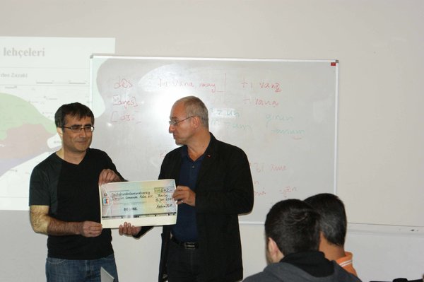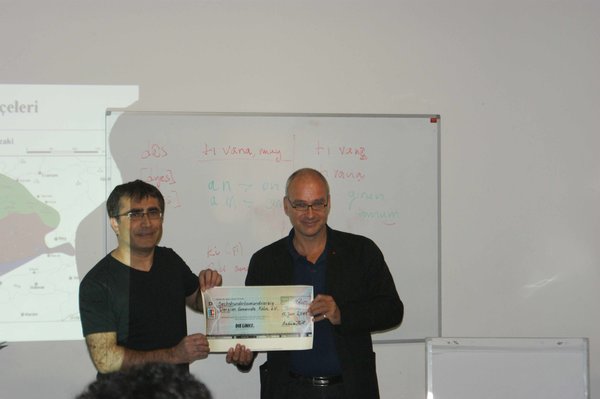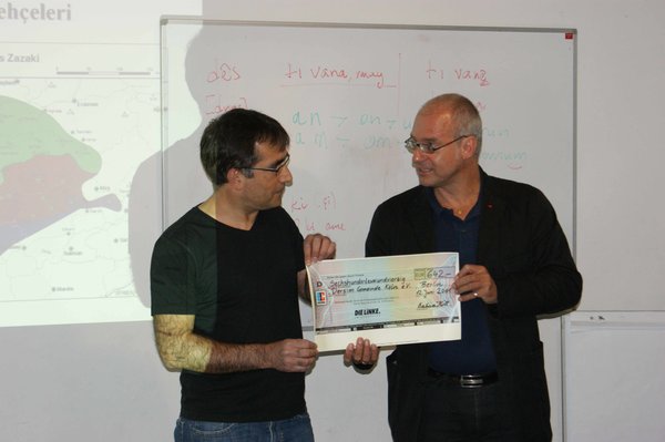 „Die Ausbildung der SprachlehrerInnen für Zazaki und Kurmanci wird nirgendwo akademisch angeboten. Deshalb hatte die Dersim Gemeinde e.V. bereits vor zwei Jahren einen mehrteiligen Ausbildungskurs angeboten, der aber aufgrund fehlenden Geldes abgebrochen werden musste. In diesem Jahr will die Gemeinde einen neuen Versuch starten. Deshalb hat der Verein der Bundestagsfraktion DIE LINKE e.V. eine Spende in Höhe von 642,00 € bewilligt, um die Dersim Gemeinde bei diesem Vorhaben zu unterstützen.“