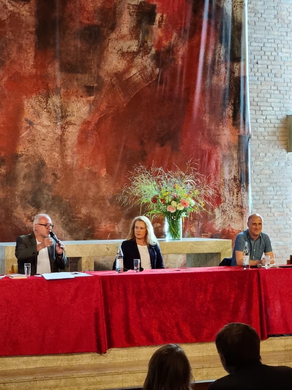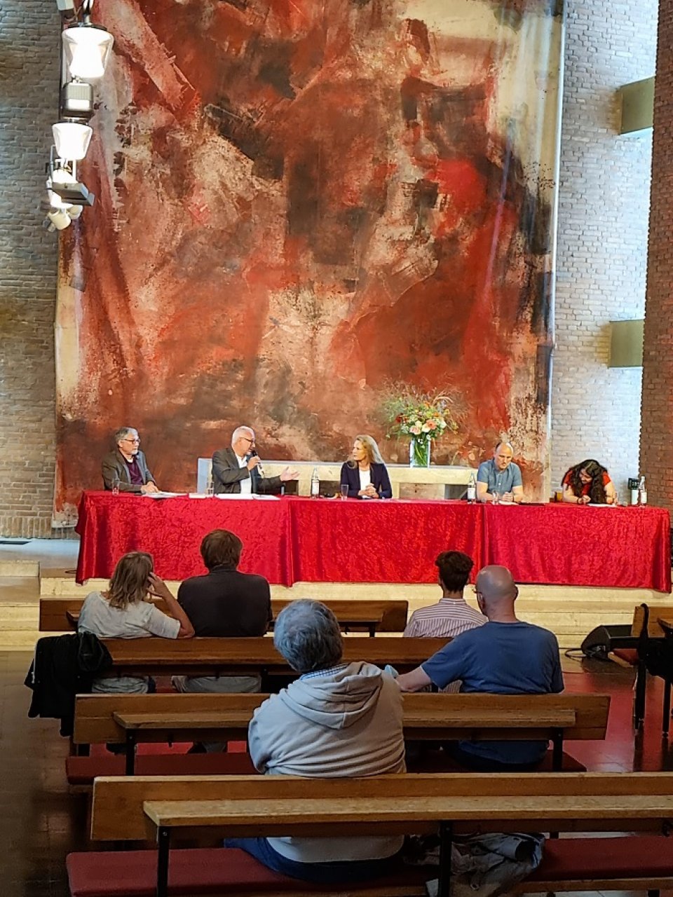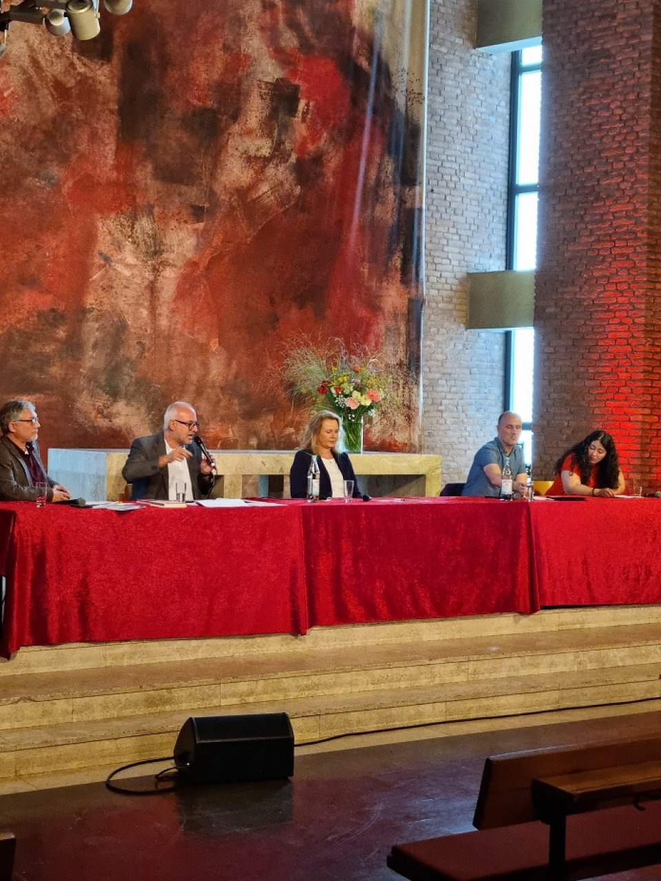 Auf dem Podium: Olivier Fuchs (VOLT), Matthias W. Birkwald MdB (DIE LINKE), Dr. Sandra von Möller (CDU), Sven Lehmann MdB (BÜNDNIS/ DIE GRÜNEN), Sanae Abdi (SPD).