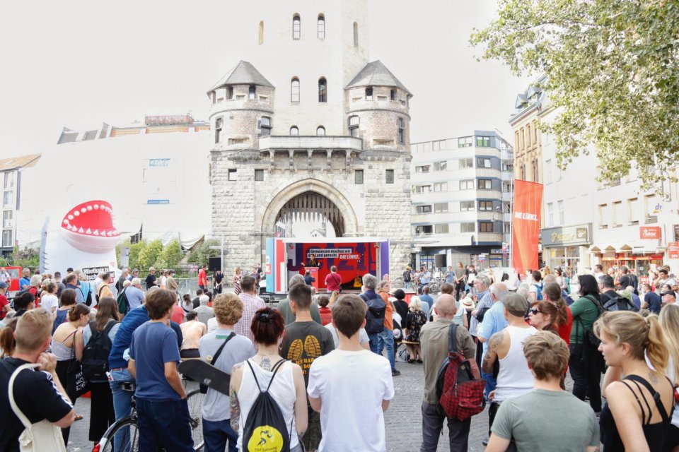 Mit den Worten der linken Aktivist:innen und Janine Wisslers Auftritt im Rücken gehen die Bundestagskandidatinnen und -kandidaten der Wahlkreise Köln I-IV Madeleine Eisfeld, ich selbst, Michael Weisenstein und Beate Hane-Knoll gut motiviert in den Endspurt zur Bundestagswahl.