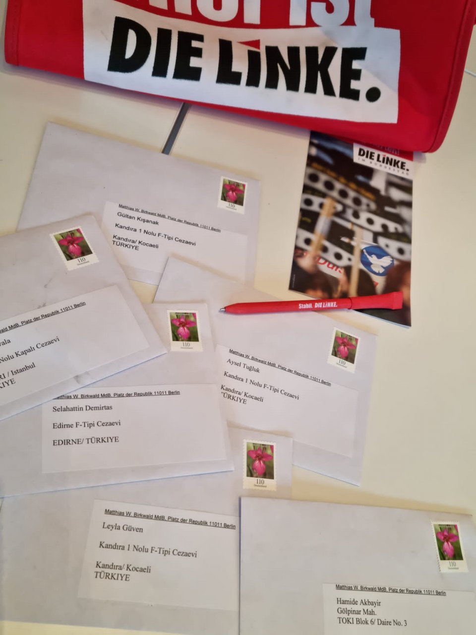 Hier beteilige ich mich an der Postkartenaktion des Kölner Vereins „Stimmen der Solidarität Mahnwache Köln e.V.“. Die Freiheitsgrüße gehen an den Vorsitzenden der HDP Selahattin Demirtaş und weitere HDP Abgeordnete, unsere ehemalige Kölner Ratsfrau Hamide Akbayir und Menschenrechtler*innen wie Osman Kavala, die auch ohne rechtmäßige Gerichtsurteile jahrelang in Untersuchungshaft sitzen.
