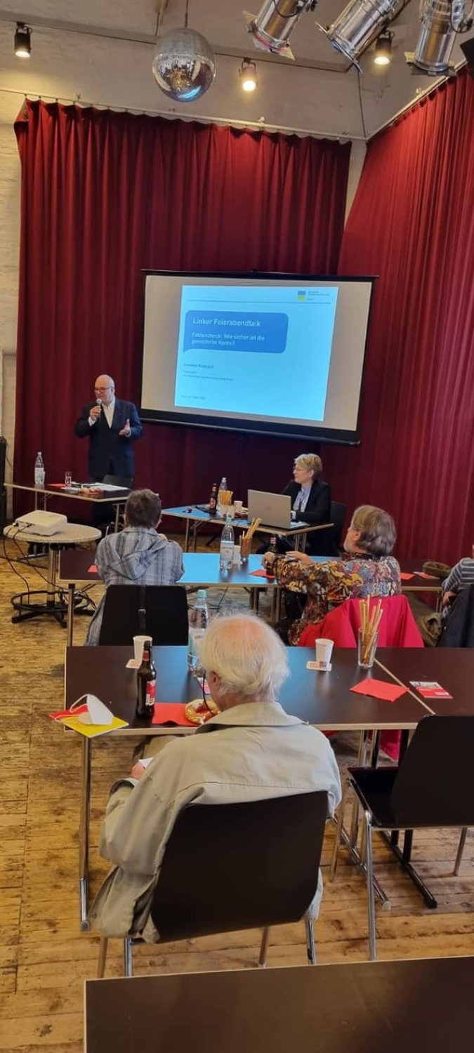 Gute Referentin, guter Vortrag, gute Diskussion, gute Stimmung: Gundula Roßbach, Präsidentin der Deutschen Rentenversicherung (DRV) zu Gast beim Linken Feierabendtalk mit Matthias W. Birkwald am 28. März. Politik „zwesche Salzjebäck un' Bier“ am Montagabend im Bürgerhaus Stollwerck.