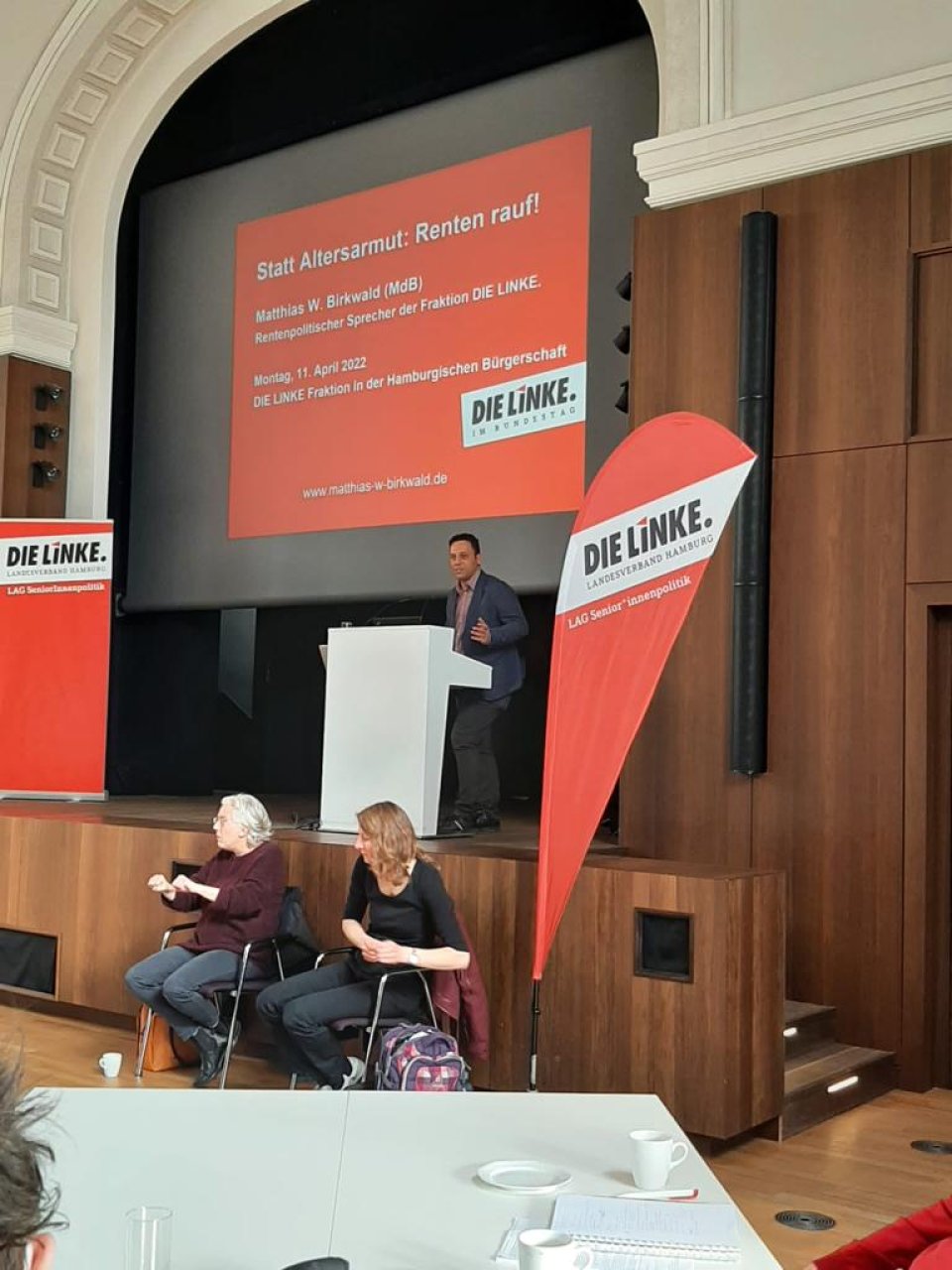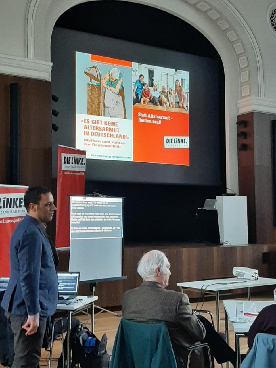 Vor mir hatte die Hamburger DGB-Vorsitzende Tanja Chawla zur Altersarmut von Frauen referiert. Ebenfalls anwesend war Klaus Wichert, der Hamburger Vorsitzende des Sozialverband Deutschland (SoVD).
