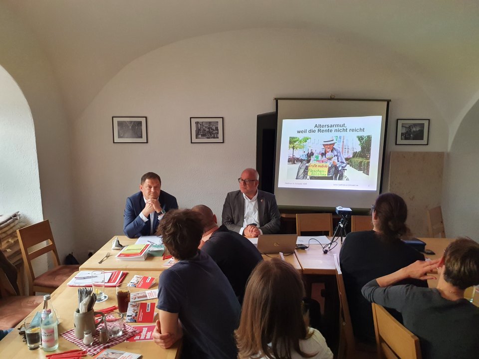Am Abend lud der Kreisverband der LINKEN in Passau ins Alte Bräuhaus ein zur Veranstaltung „Statt Altersarmut – Renten rauf!“, bei der neben Birkwald auch Andreas Schmal, DGB-Regionsgeschäftsführer Niederbayern und Mitglied im Vorstand der Deutschen Rentenversicherung Bayern-Süd, über das Thema referierte und diskutierte. Auch hier wurden große Schnittmengen zwischen Gewerkschaft und LINKEN deutlich.