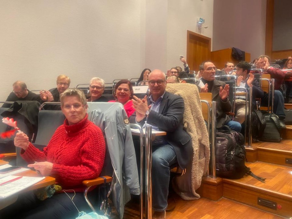 Auf dem Landesrat der LINKEN NRW am 11.02.2023 Haus der Technik im CONGRESS CENTER ESSEN