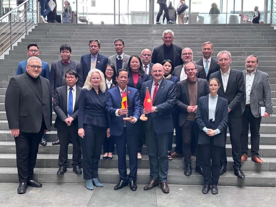 Die Delegationen des Ausschusses für Arbeit und Soziales beziehungsweise für Gesundheit des Parlaments der Sozialistischen Republik Vietnam und des Deutschen Bundestages nach unserem Gespräch am 17. April 2023.