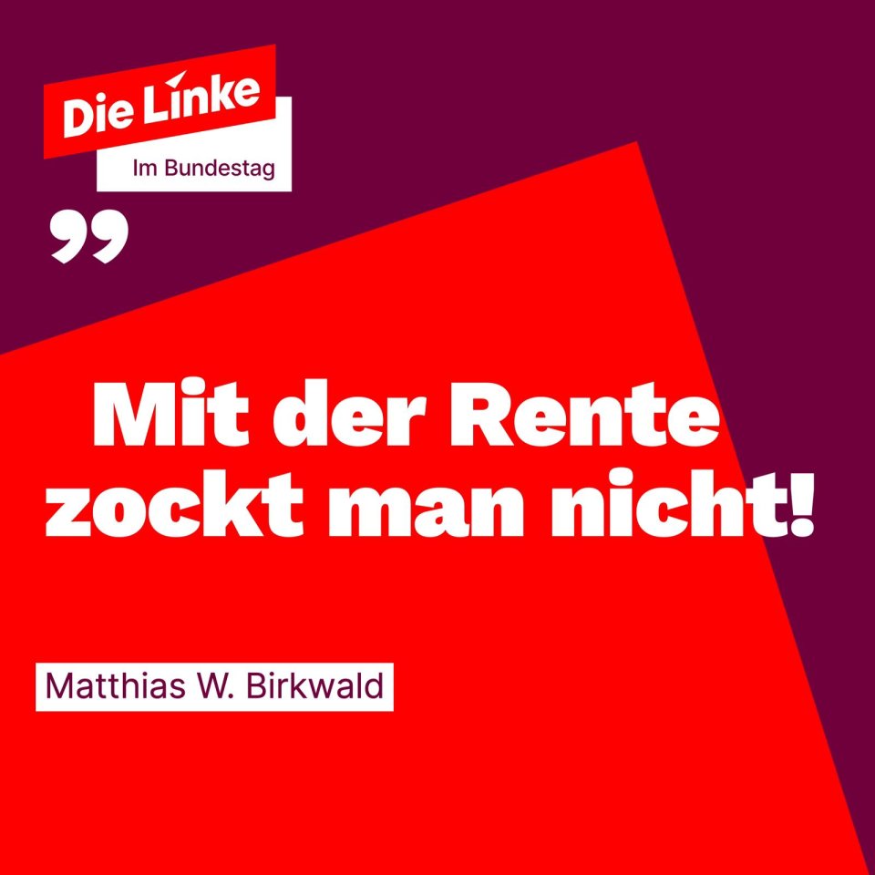 Die Linke lehnt die Einbindung des Kapitalmarktes in die gesetzliche Rentenversicherung ab. Mit der geplanten "Aktienrente" der Bundesregierung - dem sogenannten "Generationenkapital" - wird es zu keiner langfristigen Stabilisierung der Gesetzlichen Rentenversicherung kommen. Dafür bräuchte es einen riesigen Kapitalstock (über 570 Milliarden Euro) oder eine völlig unrealistische Rendite von jährlich sieben Prozent, um durchschnittlich Verdienende irgendwann Mitte der 30er Jahre um gerade mal knapp zehn Euro (entspricht einem halben Beitragssatzpunkt) pro Monat (in heutigen Werten) zu entlasten. Und da sind die aktuell steigenden Zinskosten für den staatlichen Kredit noch nicht einmal drin enthalten.