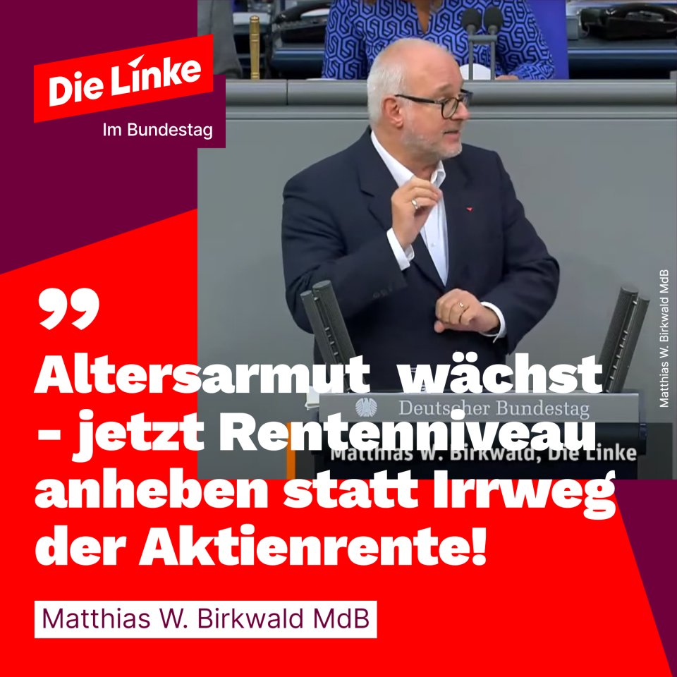 Wir Linken fordern mit unseren Antrag „Gesetzliche Rente stärken“ konkrete und bezahlbare Verbesserungen für alle! Mit einem Rentenniveau von 53 Prozent statt aktuell 48 Prozent könnten die Renten sofort um zehn Prozent erhöht werden!