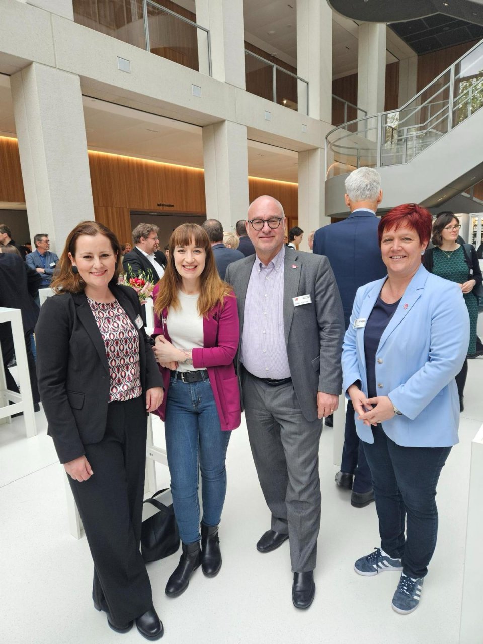 Beim Festakt zu 75 Jahren Tarifvertragsgesetz im neuen DGB-Haus in Berlin mit der Parteivorsitzenden der Linken, Janine Wissler MdB, unserer Gruppenvorsitzenden der Linken im Bundestag, Heidi Reichinnek MdB und Susanne Ferschl MdB, meiner Vorsitzenden des Arbeitskreises für Arbeit und Soziales der Linken im Bundestag. Die Festrede hielt der Bundesminister für Arbeit und Soziales, Hubertus Heil MdB.