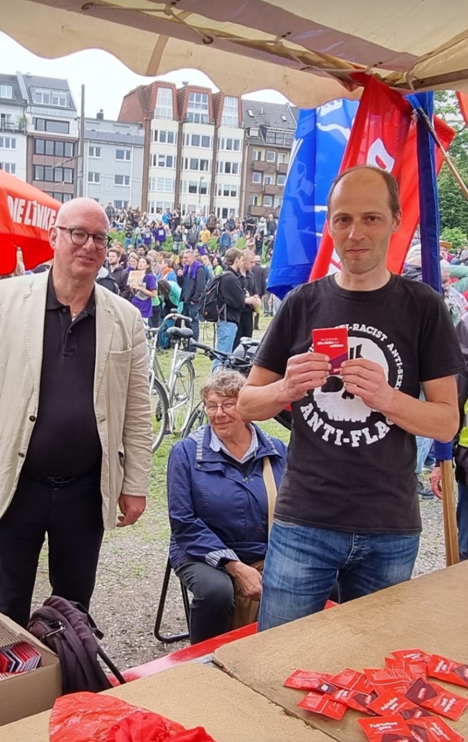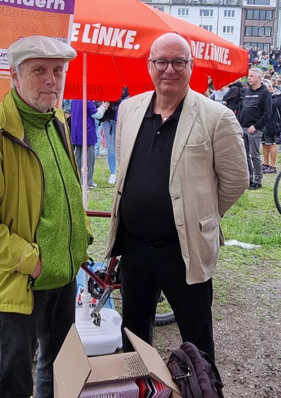 Zu sehen mit Jürgen Seitz, Sprecher des Ortsverbandes DIE LINKE. Köln-Lindenthal