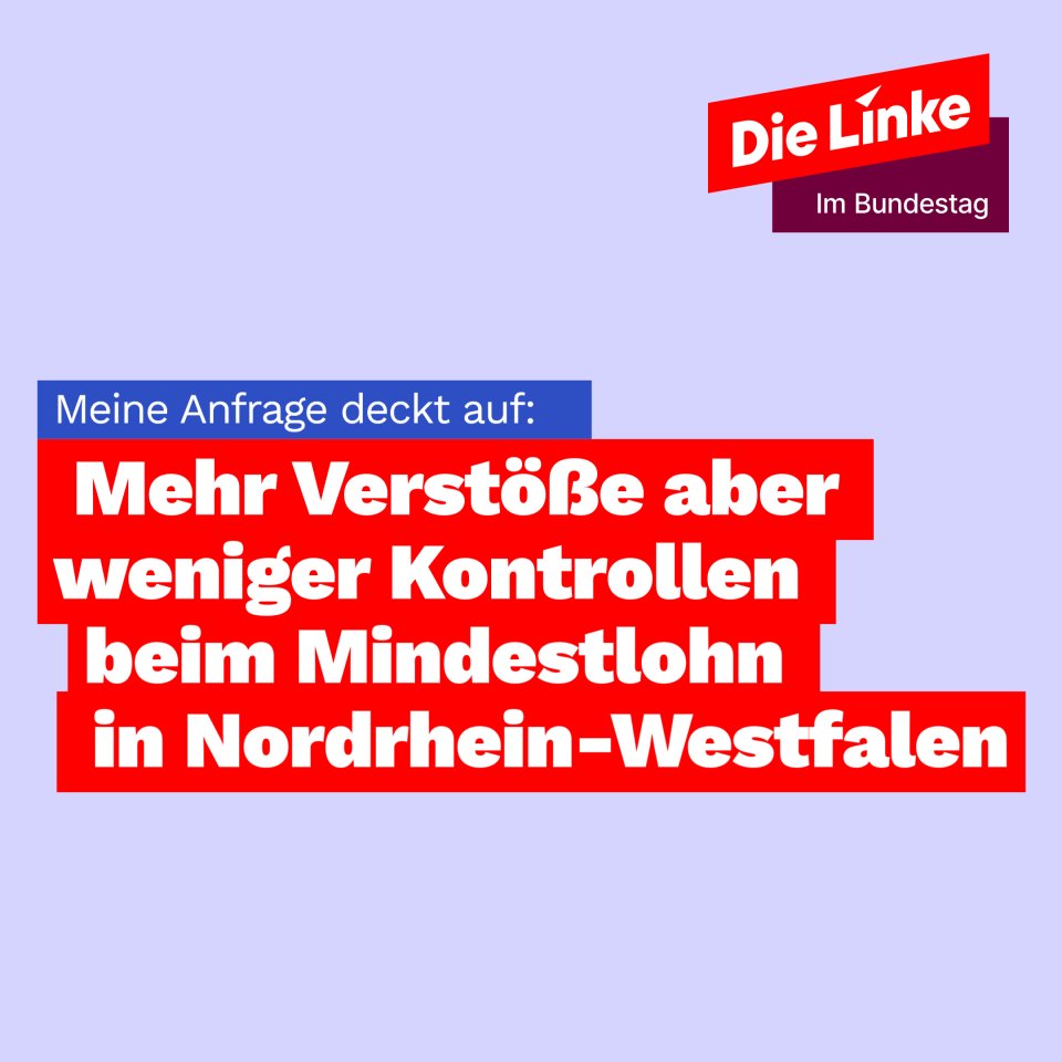 "Der Linken-Bundestagsabgeordnete Matthias W. Birkwald wertet den Rückgang der Kontrollen kritisch - diese Entwicklung sei «nicht akzeptabel». Es gebe unmissverständlichen und unübersehbaren Handlungsbedarf. Der Linkenpolitiker moniert zudem, dass der gesetzliche Mindestlohn von derzeit 12,41 Euro pro Stunde zu niedrig ausfalle - er sollte zunächst auf 14 Euro ansteigen und zum Jahreswechsel auf 15 Euro ansteigen. Davon würden allein in Nordrhein-Westfalen: 2,3 Millionen Beschäftigte profitieren - so viele Menschen verdienten derzeit weniger als 15 Euro pro Stunde.