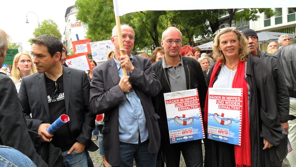 An der Seite von rund 500 Bürgerinnen und Bürger und der LINKEN Fraktion im Rat der Stadt Köln demonstrierte Matthias W. Birkwald (MdB) am vergangenen Samstag, den 17. September 2011, für den Erhalt der Hallenbäder in Nippes, Weiden und Rodenkirchen. Mit Plakaten und Transparenten zog man vom Rudolfplatz zum Agrippabad, wo die Abschlusskundgebung stattfand.