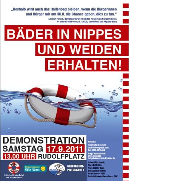 Die bisherige Planung der Stadt Köln sieht vor, nach der Eröffnung der neuen Schwimmbäder am Lentpark und in Müngersdorf die Einrichtungen in Nippes und Weiden komplett zu schließen. Das Bad in Rodenkirchen soll nur noch von Schulen und Vereinen genutzt werden. Dagegen lehnt DIE LINKE Fraktion im Rat der Stadt Köln den Vorschlag des Stadtvorstandes ab, die Schwimmbäder in Nippes und Weiden zu schließen Sie fordert den Erhalt aller Bäder sowie die Öffnung des Gruppenbades in Nippes für die Öffentlichkeit. Mit den Schließungen von Nippes und Weiden wird sich die Bäder GmbH weiter aus den Veedeln zurückziehen. Die Wege werden weiter und beschwerlicher, vor allem für Senioren, Kinder und Jugendliche.