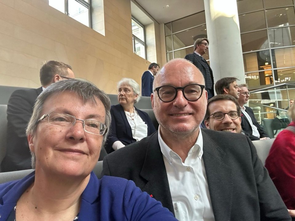 Während der konstituierenden Sitzung des 21. Deutschen Bundestages auf der Besuchertribüne mit meiner Landesvorsitzenden Kathrin Vogler.