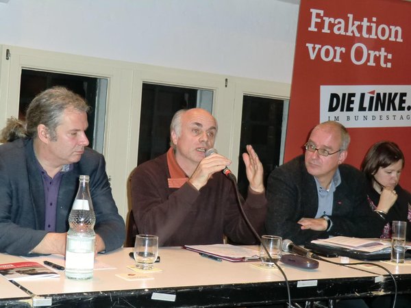 Die Linksfraktion im Bundestag war als Einladerin an diesem Abend gleich mit vier Bundestagsabgeordneten vertreten: Paul Schäfer, Andrej Hunko, Heike Hänsel und Matthias W. Birkwald.