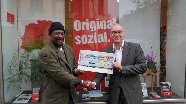 Der Bundestagsabgeordnete Matthias W. Birkwald übergab am 09.01.2012 Birane Gueye, dem Vorsitzenden des Vereins Miftahoune Nasri, zu Deutsch „Schlüssel zum Erfolg“, einen symbolischen Spendenscheck des Verein der Bundestagsfraktion DIE LINKE. Diese Spende sei die erste finanzielle Unterstützung, die der Verein seit Gründung erfahre, freute sich Herr Gueye.
