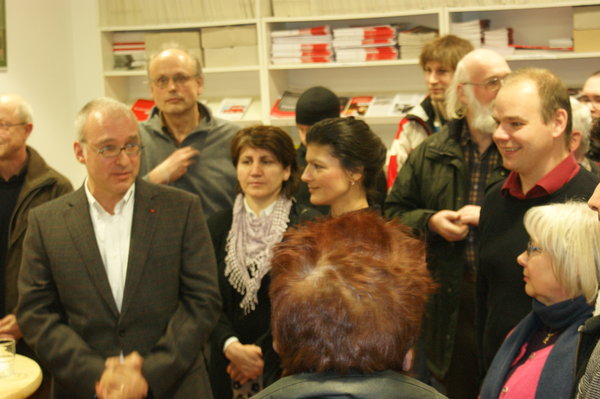 Das neue Parteibüro in der Nähe der Universität zu Köln wurde am 10.Februar 2012 durch die beiden Bundestagsabgeordneten Sahra Wagenknecht und Matthias W. Birkwald eröffnet. Viele Genossinnen und Genossen waren gekommen, so dass das neue Raumangebot für den Kreisverband Köln aus allen Nähten platze. Nach einem kurzen Vortrag zur EU Krise von Sahra Wagenknecht wünscht Matthias W. Birkwald der Sprecherin und dem Sprecher des KV Köln Angelika Link-Wilden und Torsten Löser viel Erfolg für die politische Arbeit und ein reges Parteileben in den neuen Räumlichkeiten.