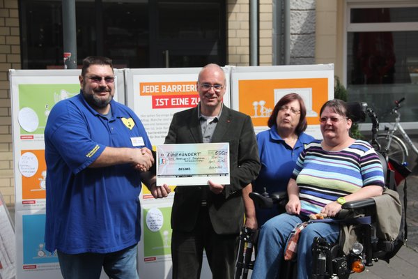 Die symbolische Übergabe fand durch Matthias W. Birkwald MdB am Freitag, den 04. Mai 2012 um 11.30 Uhr am Infostand der SHG Handicap in der Bergheimer Fußgängerzone statt.