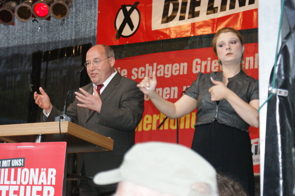 Am Freitag, dem 11. Mai 2012 fand auf dem Kölner Heumarkt die gelungene LINKE Abschlussveranstaltung zur Landtagswahl in NRW statt. Vor gut 500 interessierten Besucherinnen und Besuchern moderierte ich gemeinsam mit Katharina Sass die Veranstaltung mit den Direktkandidat_innen Uschi Röhrig, Özlem Alev Demirel, Carolin Butterwegge, Berthold Bronisz, Michael Weisenstein und Hans Peter Fischer. Hauptrednerin war Bärbel Beuermann, eine unsere Spitzenkandidatin der Landesliste NRW. Sie wurde vom Parteivorsitzenden der LINKEN, Klaus Ernst, und dem Vorsitzenden der LINKEN Bundestagsfraktion, Dr. Gregor Gysi, durch mitreißenden Reden unterstützt.